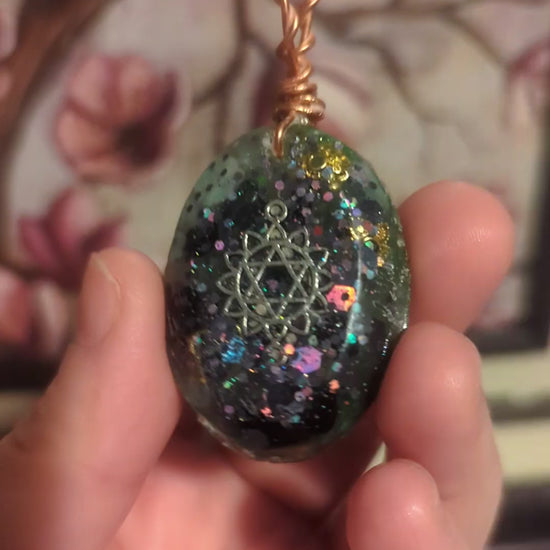 Green Aventurine, Amazonite, & Obsidian Orgonite Pendant, Star of David