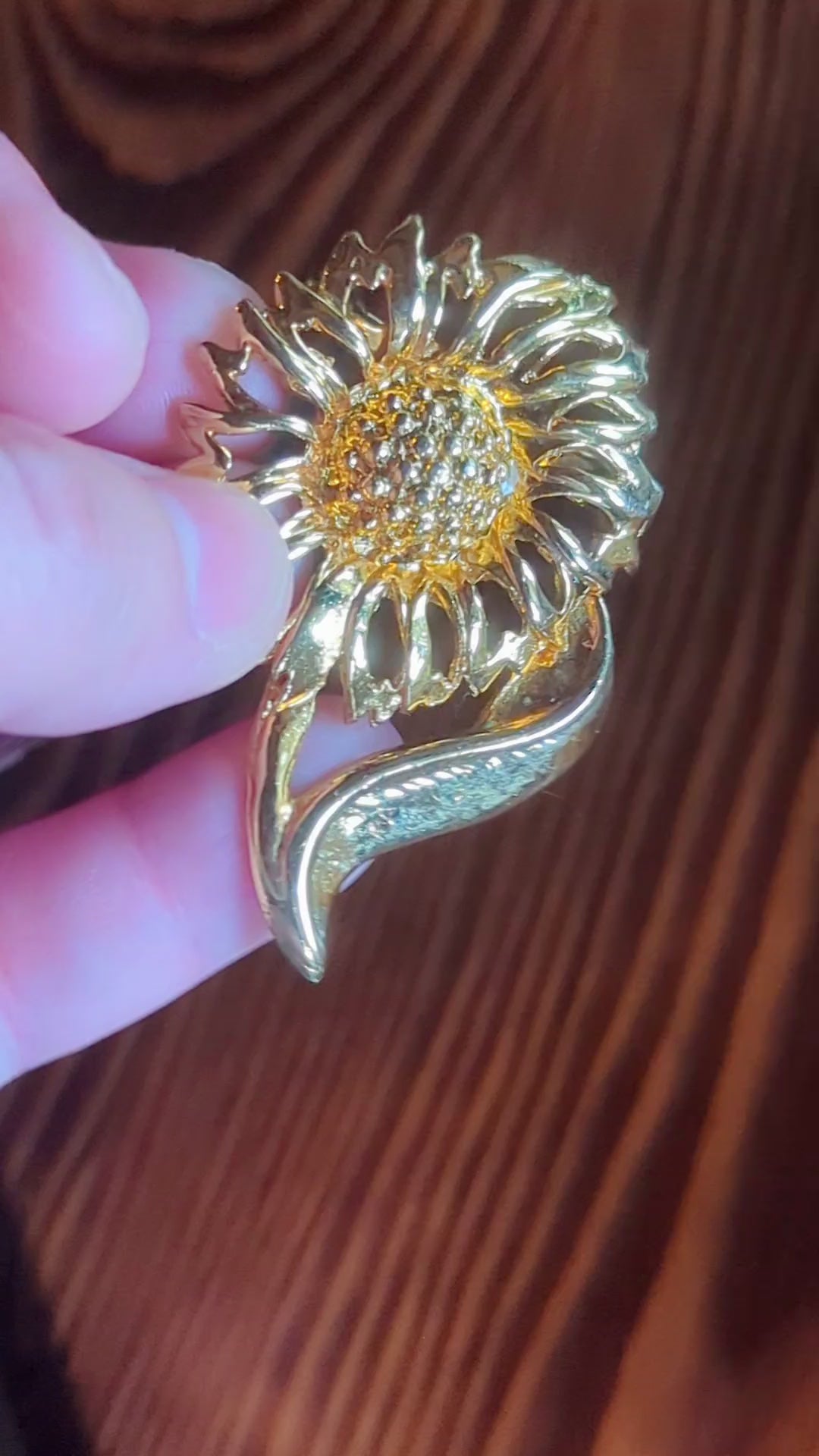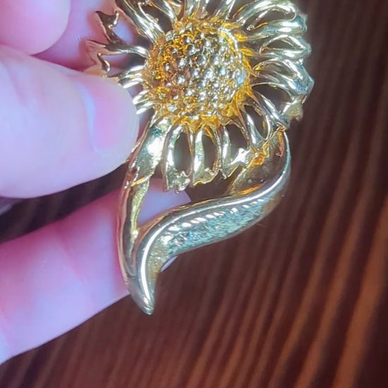 Gold Sunflower Vintage Pin. Sunflowers symbolize Warmth, Loyalty, and Happiness. For some Summer and Sunshine vibes