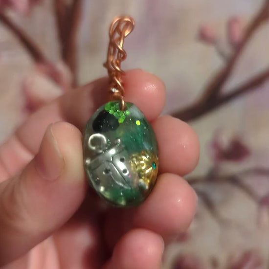 Green Aventurine, Amazonite, and Obsidian Orgonite Pendant, Lady Bug