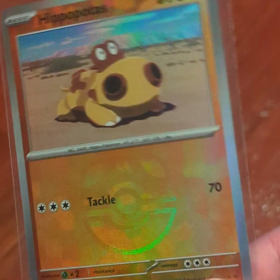 Hippopotas Masterball Pokemon Card, 052/131, 2025. 90hp Tackle. "It shrouds itself in sand to ward off germs. It travels easily through the sands of the desert."