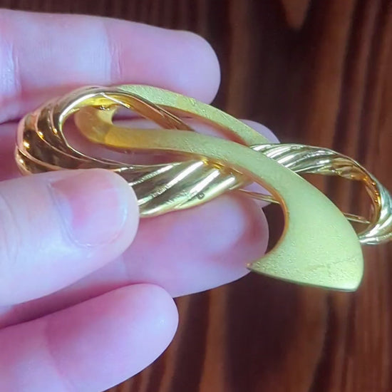 Tona Signed Gold Abstract Ribbon Vintage Pin