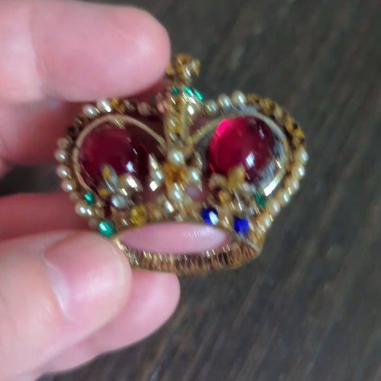 Vintage Pin, Crown. The Crown has stood as a symbol of Royalty for centuries. It is also symbolic of Honor, Glory, Victory, and Achievement. This Particular Crown looks as though it may have survived many battles. It's missing stones and looks as though someone had attempted to repair it in the past. Despite all of it's imperfections I think this Brooch is still quite Lovely in it's own way. It's rough appearance in my mind is a testament to it's Journey. The fact that someone attempted to fix it suggests that someone cared about this pin. I hope someone will find it, and give it as much reverence as it's last owner. It seems to say, despite my flaws, I'am still FabulousÂ